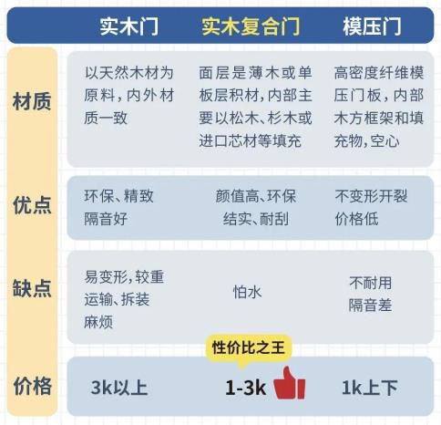 不同品種的木門因為材質(zhì)的差別,優(yōu)毛病不一,價錢差別也較大(對照見下圖↓↓)