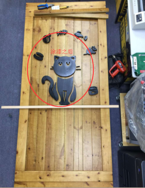 中間晾曬的幾塊板材,是拿來做門周邊封邊解決的,這幾塊板材最佳選色彩與門板一致的,為了節約木料,因此在采辦的時候就要計算好大約有多少塊的板材。
