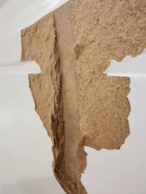 由于家中加裝凈水器毀壞了水管,結(jié)果造成家中發(fā)大水,這木門被泡壞了,可就在陳女士一家在卸下木門,想看看這木門究竟是啥木質(zhì)時(shí),卻發(fā)掘外面是一層層的紙皮。