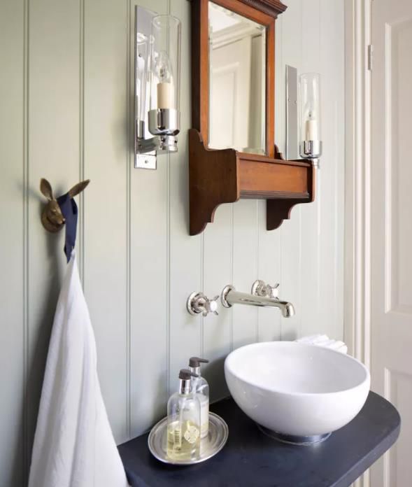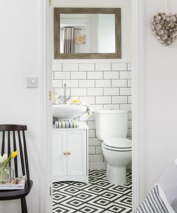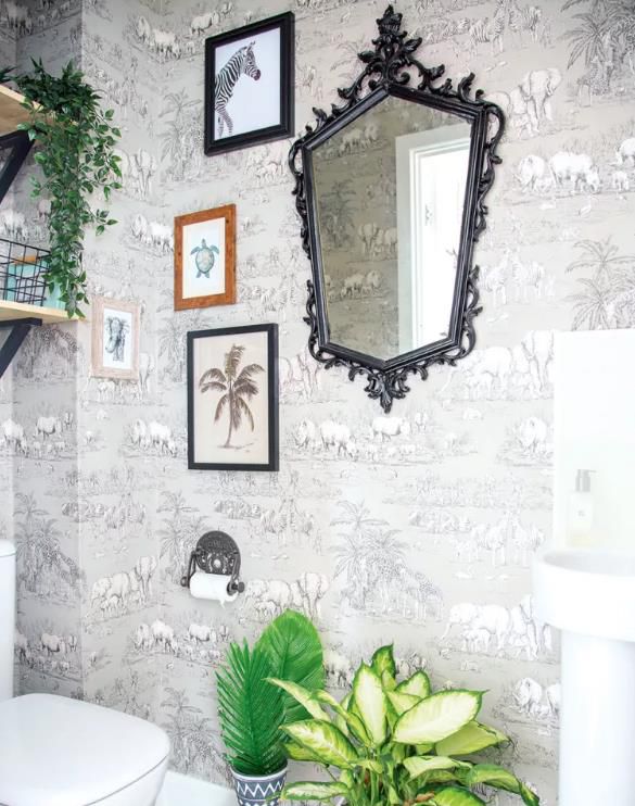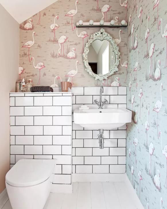 漂亮的鏡子、燈光和配飾增添了女性風格,而帶有深色灌漿的地鐵瓷磚則平衡了外觀。一旦時尚改變了這個小空間,只需幾卷新壁紙即可輕松更新,以獲得全新的外觀。