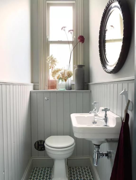 尋找智能解決方案以節省非常有限的衣帽間的空間。利用角落水槽騰出寶貴的空間來移動。如果您的門直接打開到水槽上,這個樓下的想法特別有效 - 設計越小,感覺限制越少。尋找一個角落存儲單元坐在水槽下方以節省更多空間。