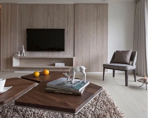 木飾面板也叫科定板,最早的時候是由一家叫科定的臺灣公司研發生產的,它的范圍更加廣義。木飾面多半是采用多層板做基底,表面貼天然木皮或科技木皮,紋理仿真度高,造型一般都是平面效果,比較適合現代簡約、極簡風格,像日系muji風用原木色木飾面板來詮釋相當到位。簡單來說就是"表皮+基層板=飾面板"