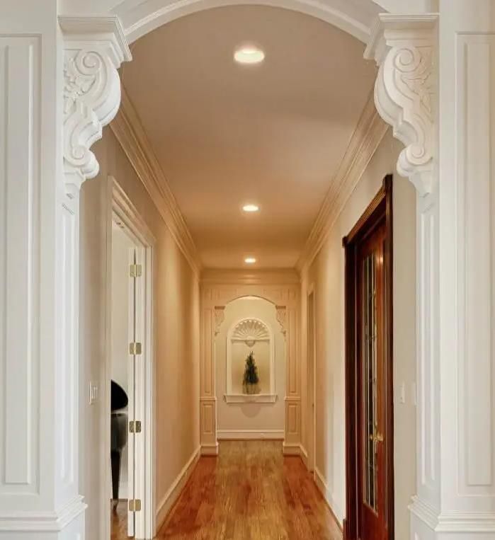 一個使用凸起鑲板的例子是在這些門口,在一個更正式的家中。鑲板一直延伸到天花板,內上角有牛腿,看起來更加正式
