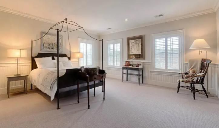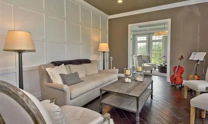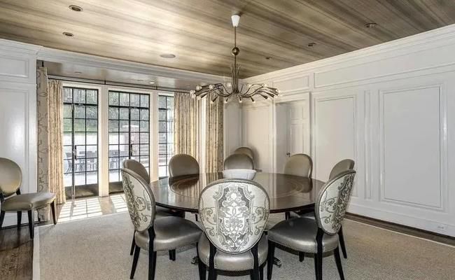 “凸起面板”式的護墻板,比影盒式的要貴。這種風格正式、優雅且非常傳統。房主選擇鑲板整個房間,給它一個非常戲劇性的外觀。