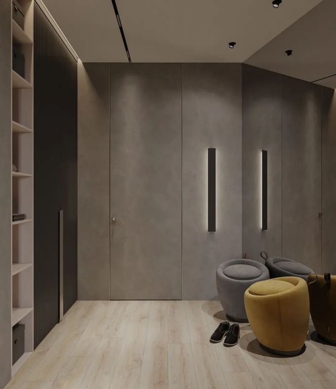 極致簡約的造型,高度的色彩凝練,將木門作為空間設(shè)計的入口,讓木門、墻板、家具飾面效果一體化,是家居空間的點睛之筆。